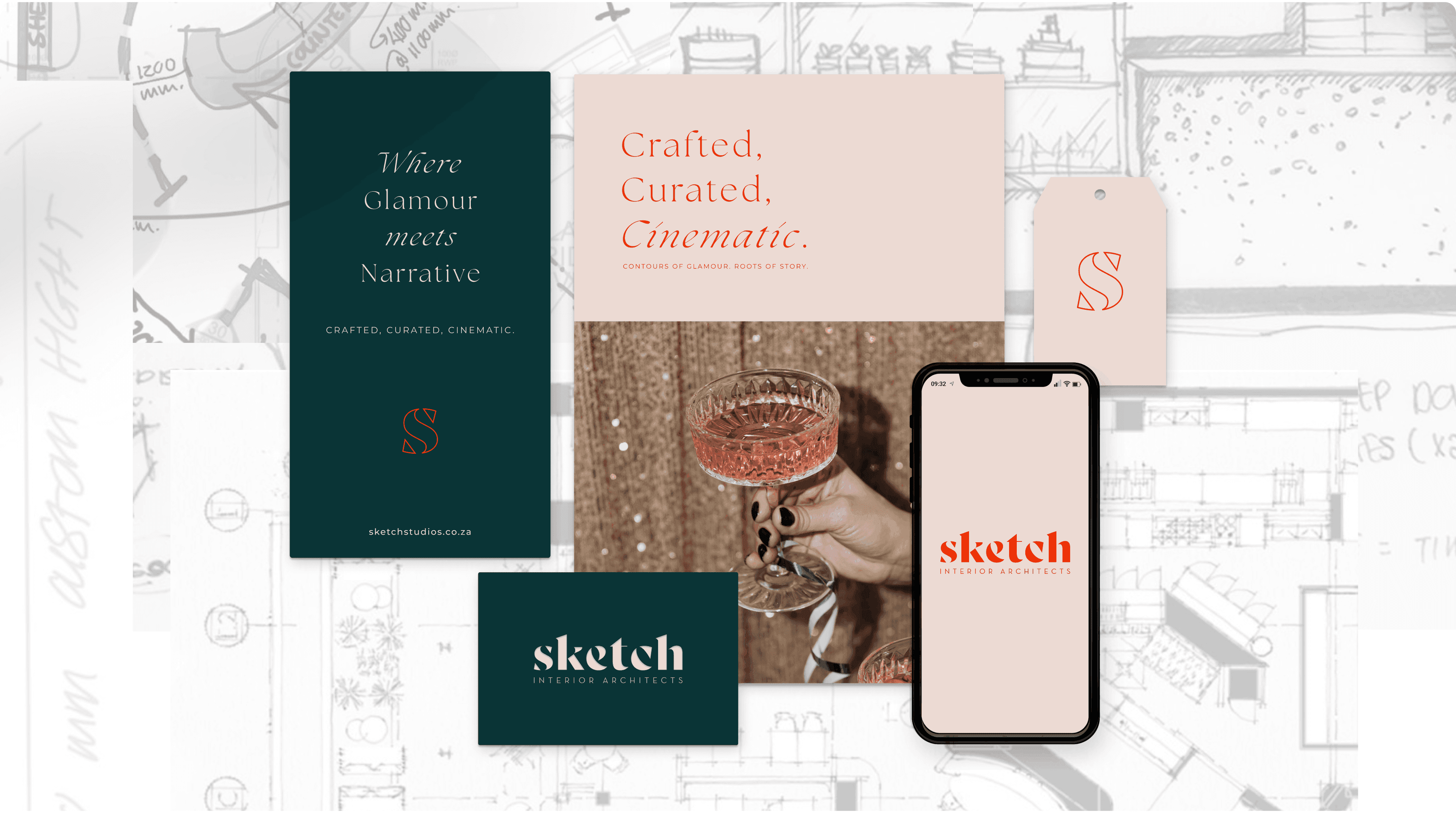 Infused with old Hollywood allure and modern edge, Sketch Interior Architects embraced a brand identity as cinematic as their interiors. Through a bespoke logo, elegant business cards, curated launch elements, and memorable corporate gifts, we captured their essence: bold, glamorous, and timeless. The result mirrors their work: spaces that whisper nostalgia while defining the future of design.